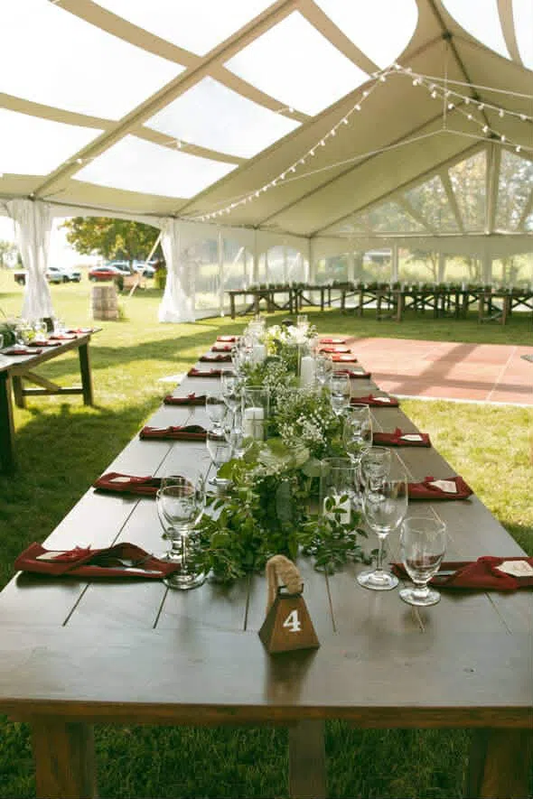 Gather Wedding and Event Rentals offers beautifully crafted wooden harvest tables, cocktail tables and benches that add natural elegance and effortless style to weddings and events of every size.
