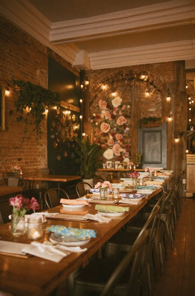 Our space blends historic charm with modern elegance — soft lighting, curated décor, and a cozy, inviting ambiance that feels both special and effortless. Whether you’re envisioning a full restaurant buyout, an intimate seated dinner, or a cocktail-style celebration, our team works closely with each couple to create a seamless, memorable event tailored to your vision.